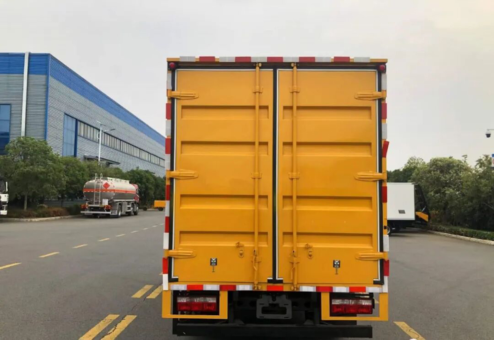 1,僅用軸距3308mm的底盤.車廂頂部封閉,不可開啟.該車專用裝置為廂體、液壓系統(tǒng),空壓機總成,水泵及使用水泵所必需的油管、